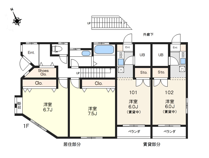 1K×4部屋(賃貸部分) |