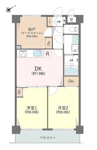 バルコニー向き | 南東 | バルコニー面積 | 6.48m² | |