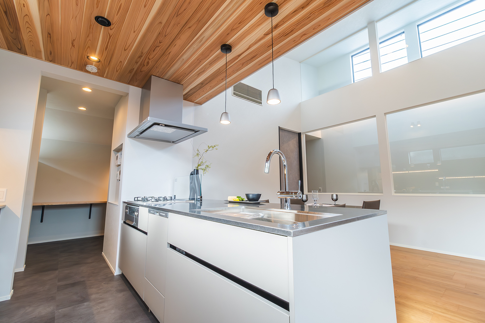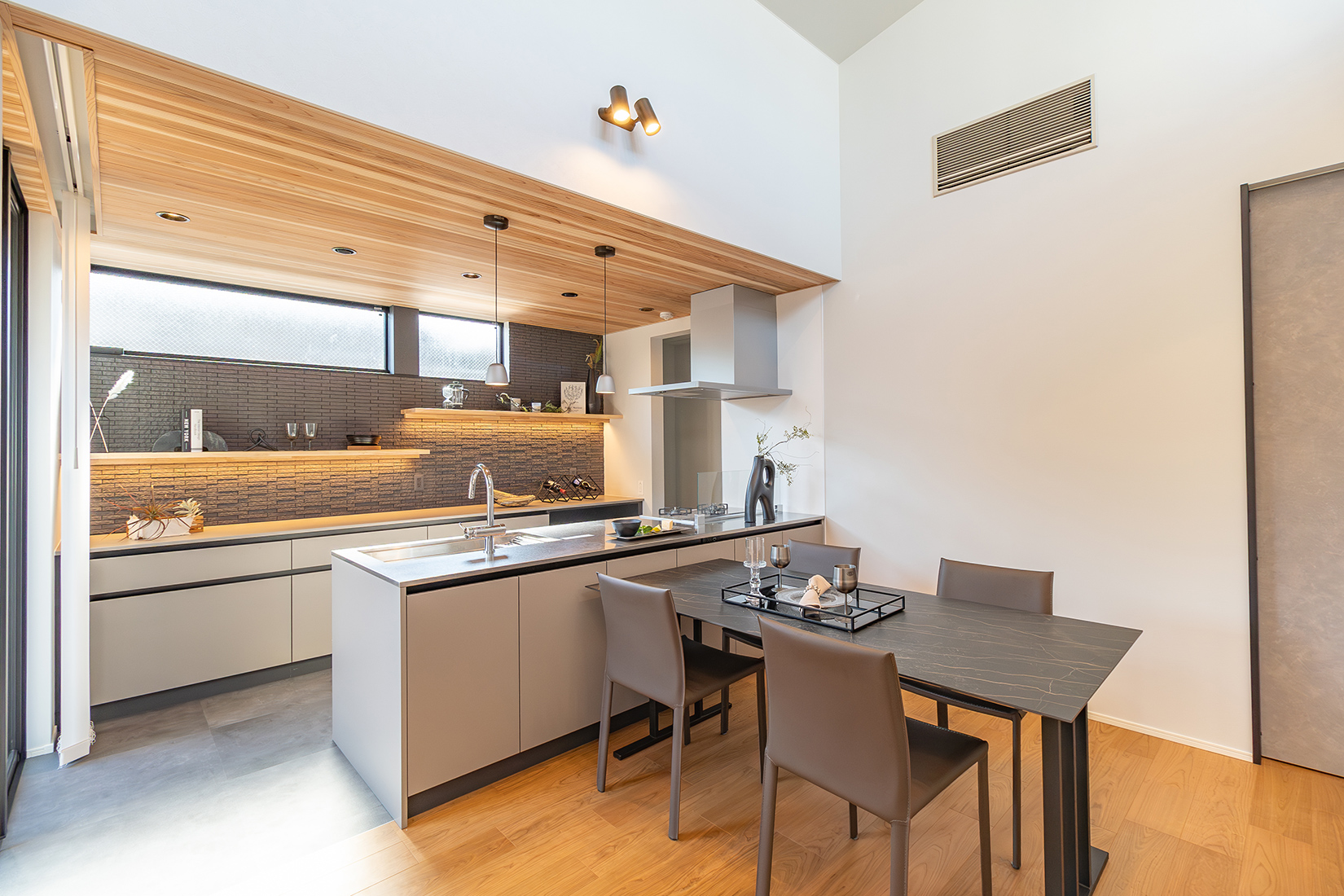 ■6m×6m公道角地、新築デザイン住宅■天井高4.2m~2.7mの開放感あるリビング&ダイニング