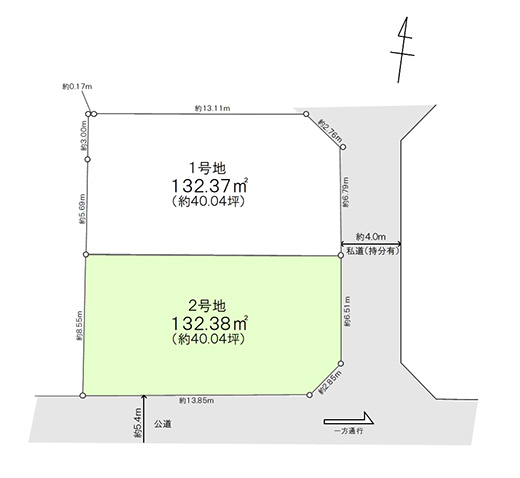 | 接道状況 | 南側 約5.4m 公道 / 東側 約4.0m 私道 |